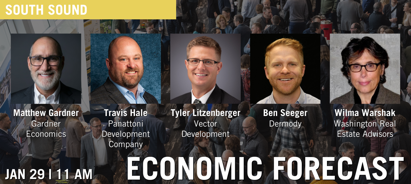 As the financial landscape continues to challenge the commercial real estate industry, our Economic Forecast event emerges as a beacon of insight and strategy for professionals across the field. Join us to gain a deeper understanding of how to navigate and thrive amidst these hurdles. This event is specially designed for all professionals in the commercial real estate sector, whether in land acquisition, development, project management, or brokerage. Our panel of industry leaders will discuss overcoming current market challenges, while our keynote economist will provide a forward-looking perspective on what the future holds. Don't miss this chance to discover innovative approaches to keep business moving forward in the South Sound's dynamic real estate landscape.